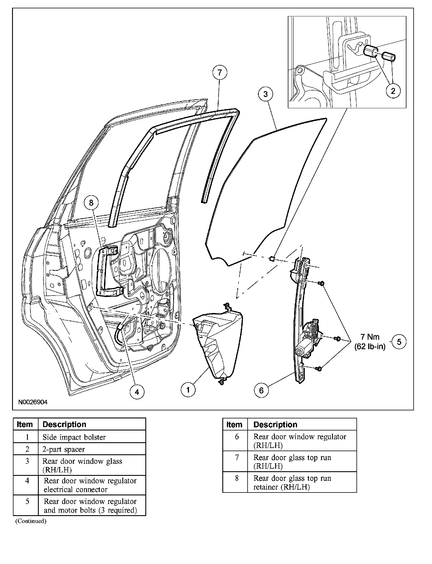 REAR DOOR WINDOW REGULATOR AND MOTORRemoval and Installation