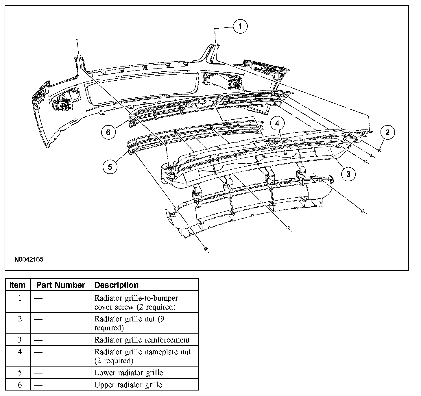 2. Remove the screws from the radiator grille-to-bumper cover.