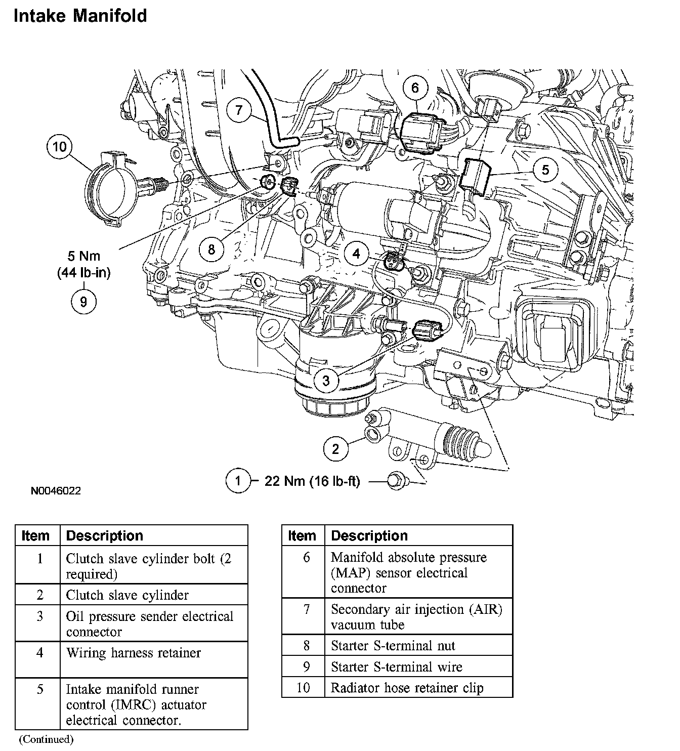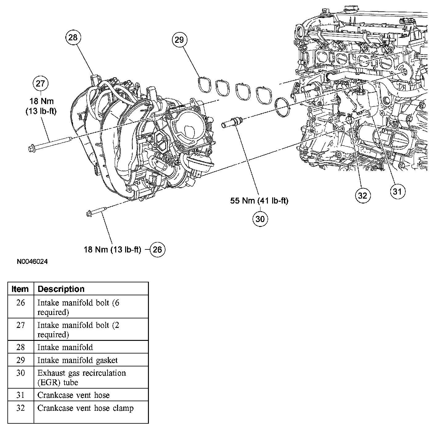 Remove the 7 bolts and position the intake manifold aside to access the crankcase vent hose clamp and the EGR tube.