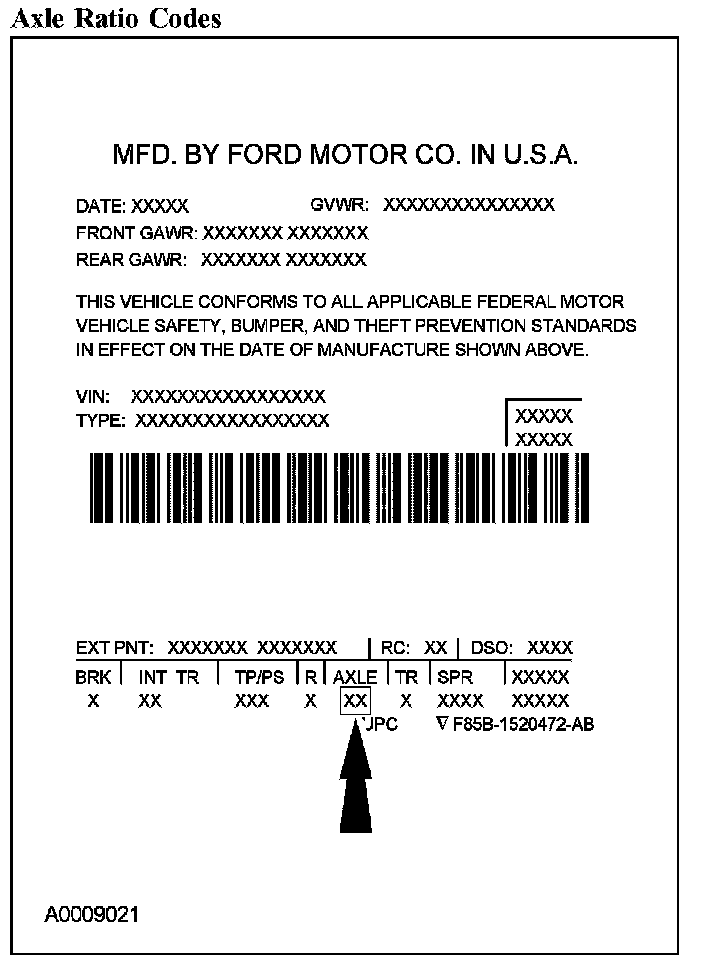 Axle Ratio Codes: