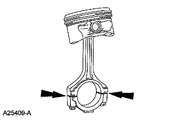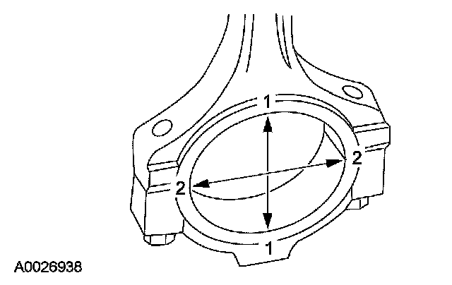 1. Tighten the bolts to specification, then measure the bore in 2 directions. The difference is the connecting rod bore out-of-round. Verify the out-of-round is within specification.