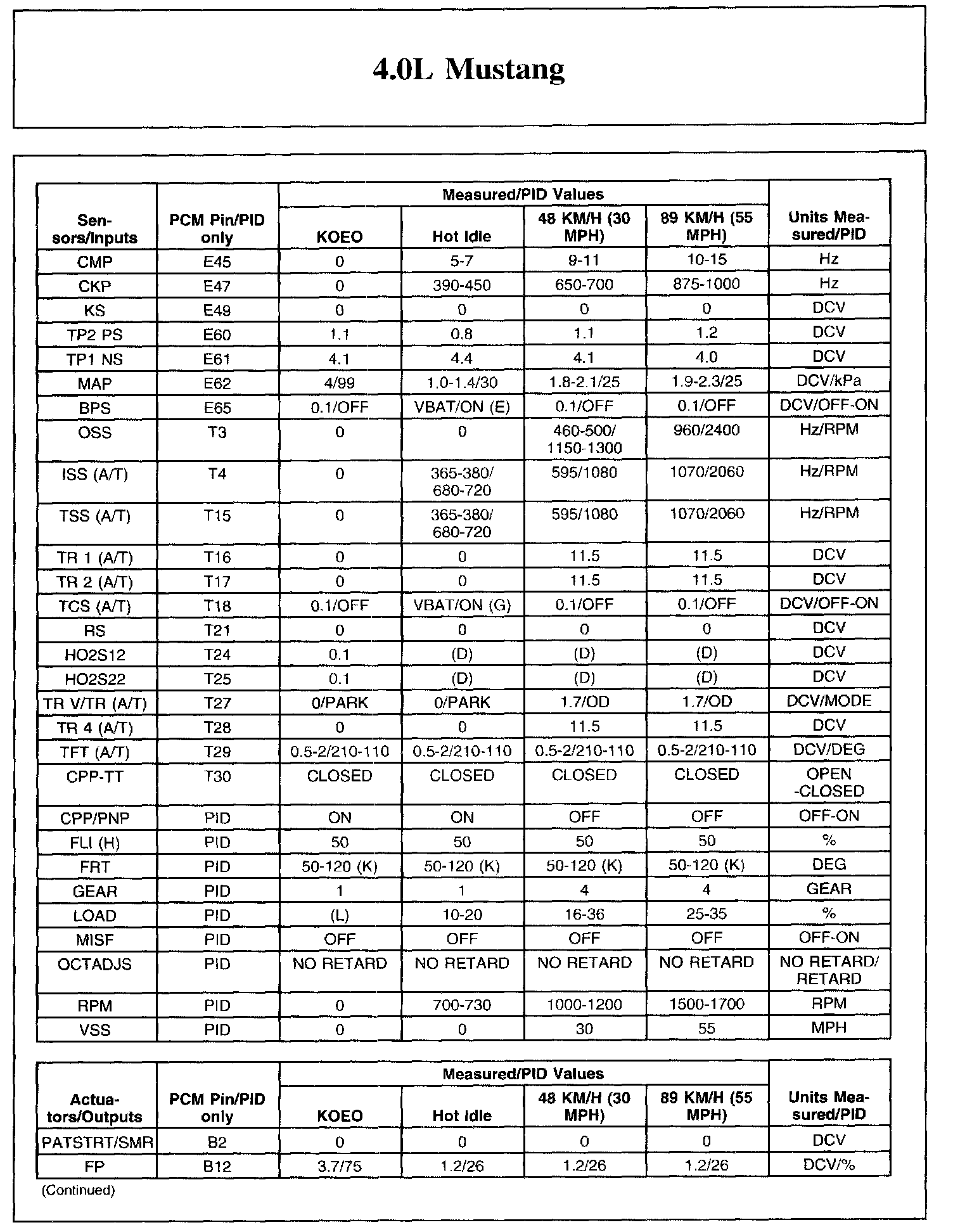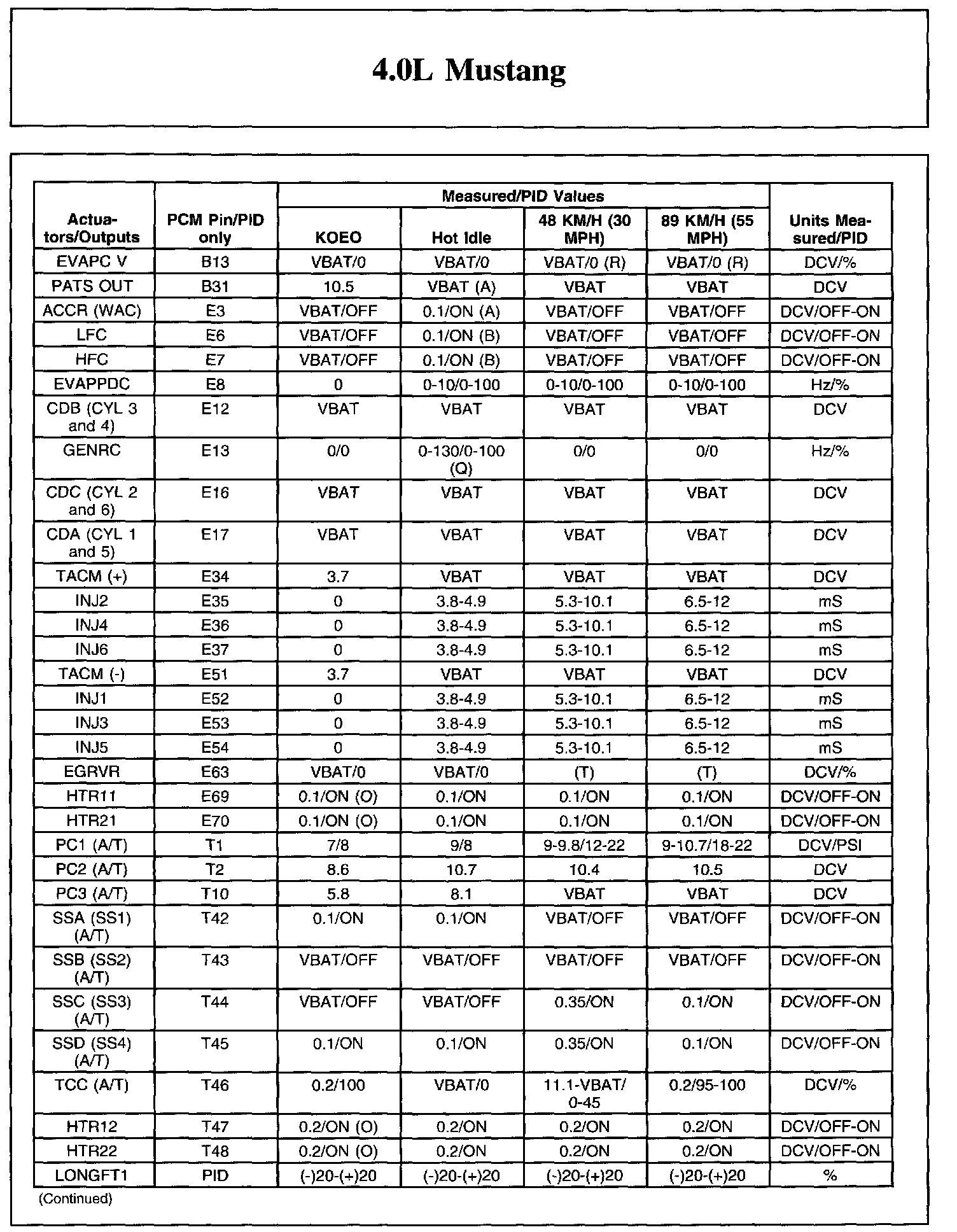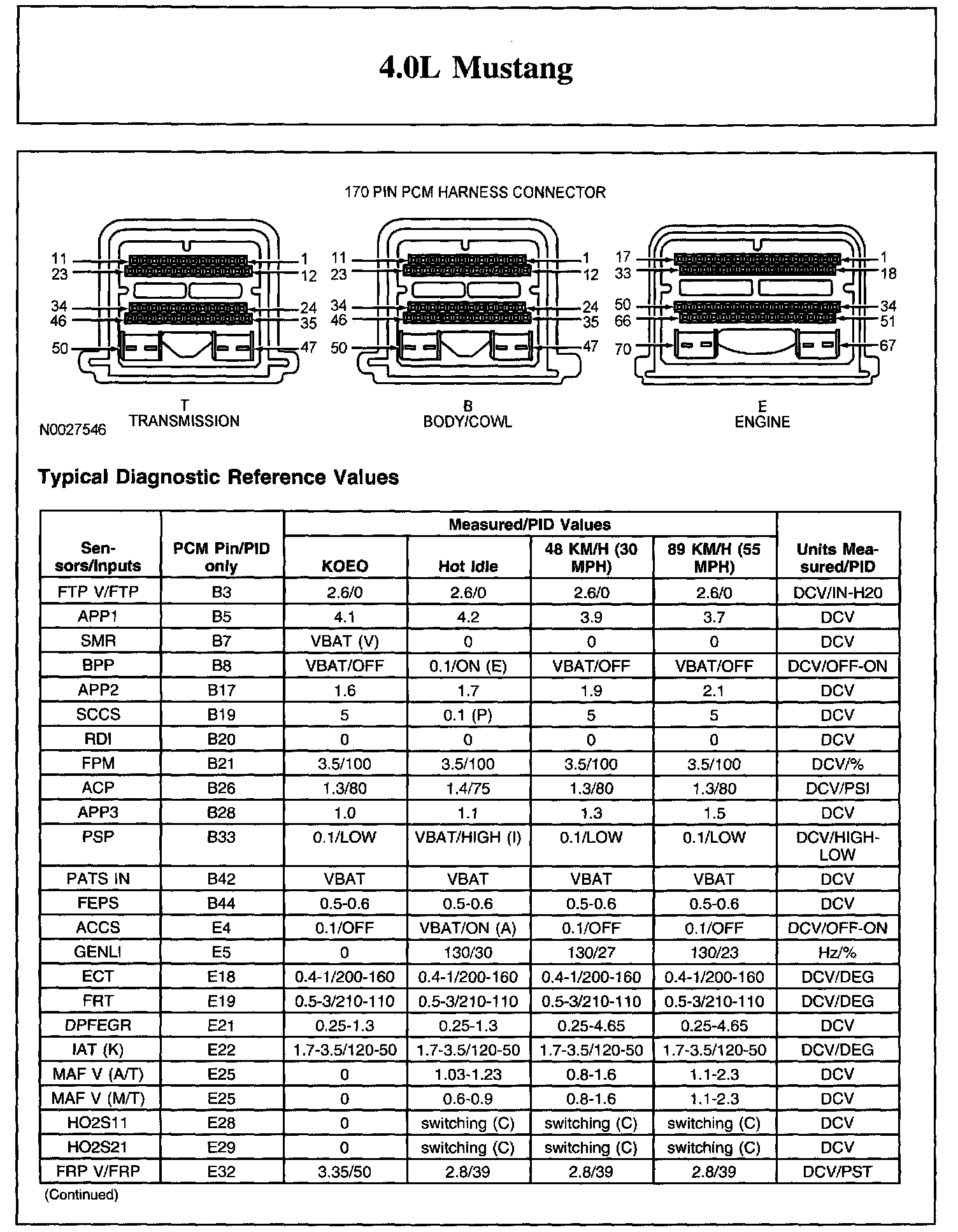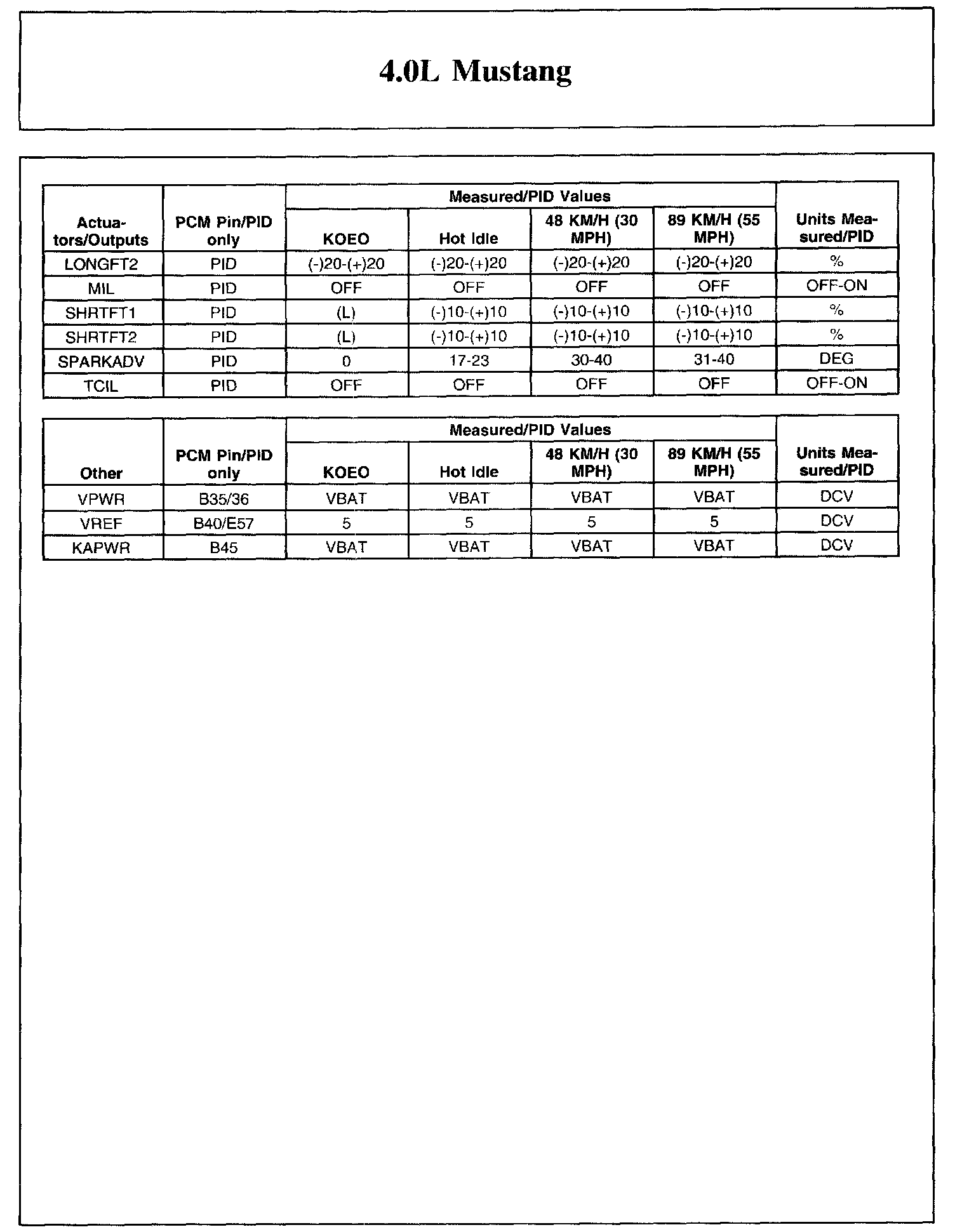 The Typical Diagnostic Reference Value Charts do not display fault parameter identifications (PIDs). These are PIDs which indicate a hard fault with the circuit. They display a value of YES or NO and are PIDs ending with the letter F.