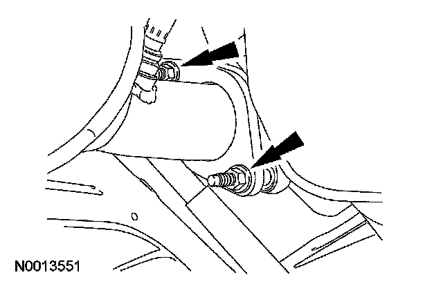- Starting with the upper nut, alternately tighten, in 10 Nm (89 inch lbs.) increments, the LH catalytic converter-to-exhaust manifold nuts to specification.