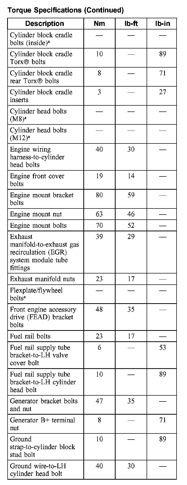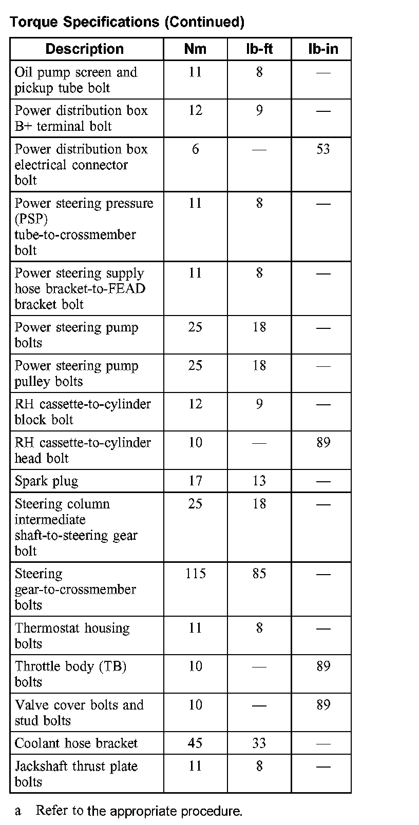 Torque Specifications: