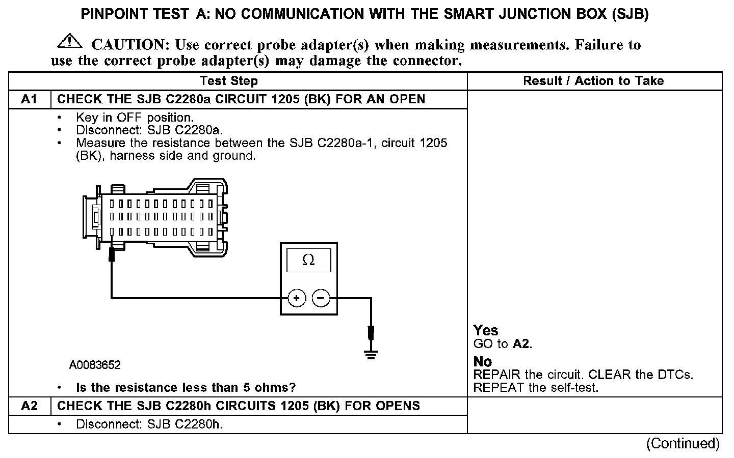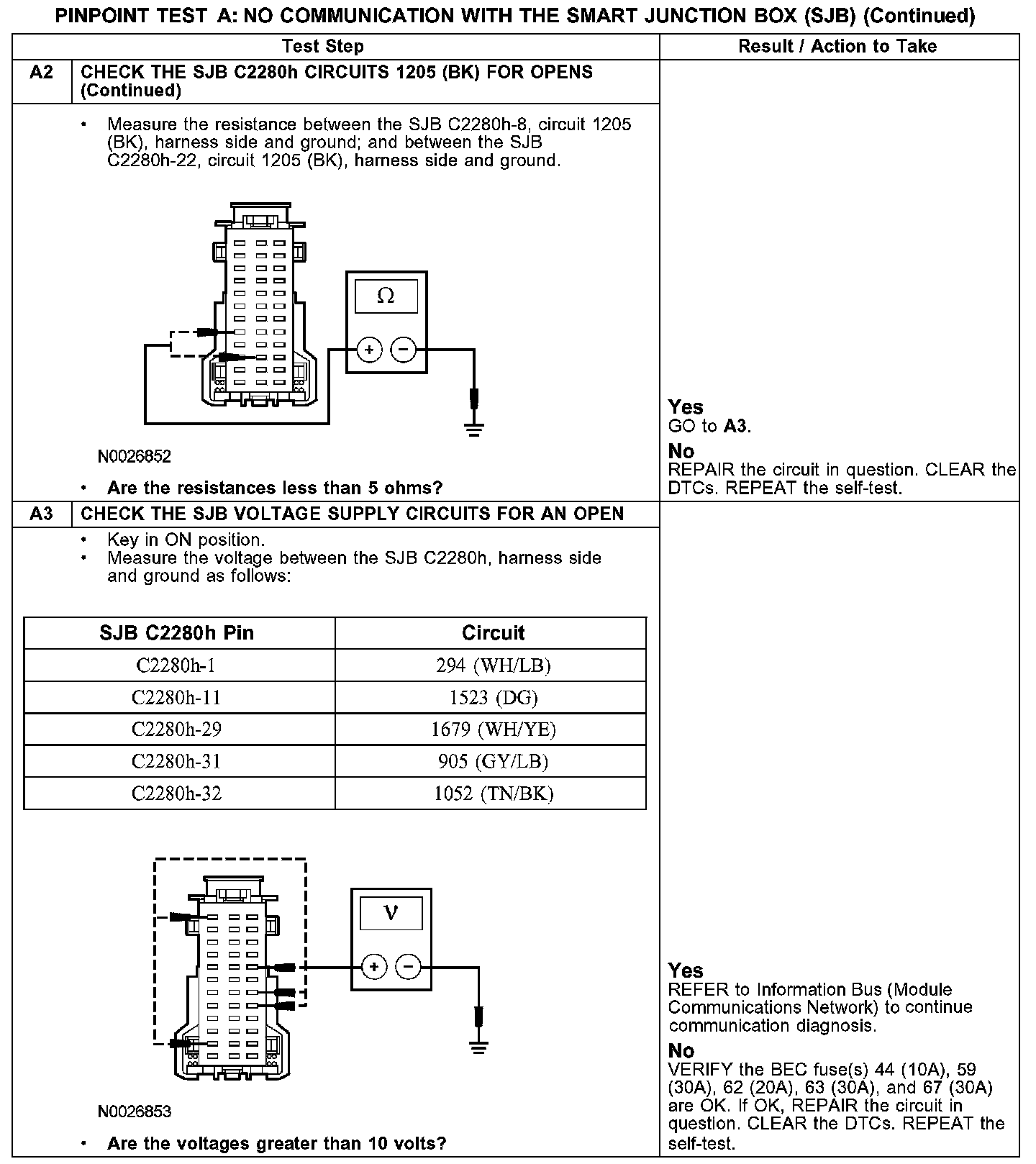 PINPOINT TEST A: NO COMMUNICATION WITH THE SMART JUNCTION BOX (SJB)A1-A2: