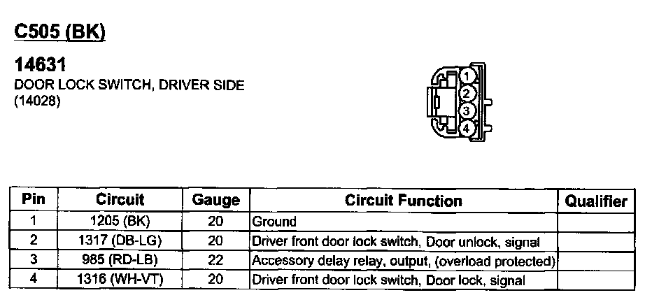 Door Lock Switch, Driver Side