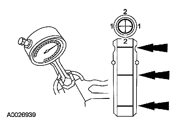 Valve - Guide Inner Diameter1. Measure the inner diameter of the valve guides in 2 directions where indicated.