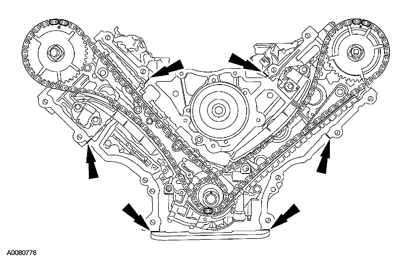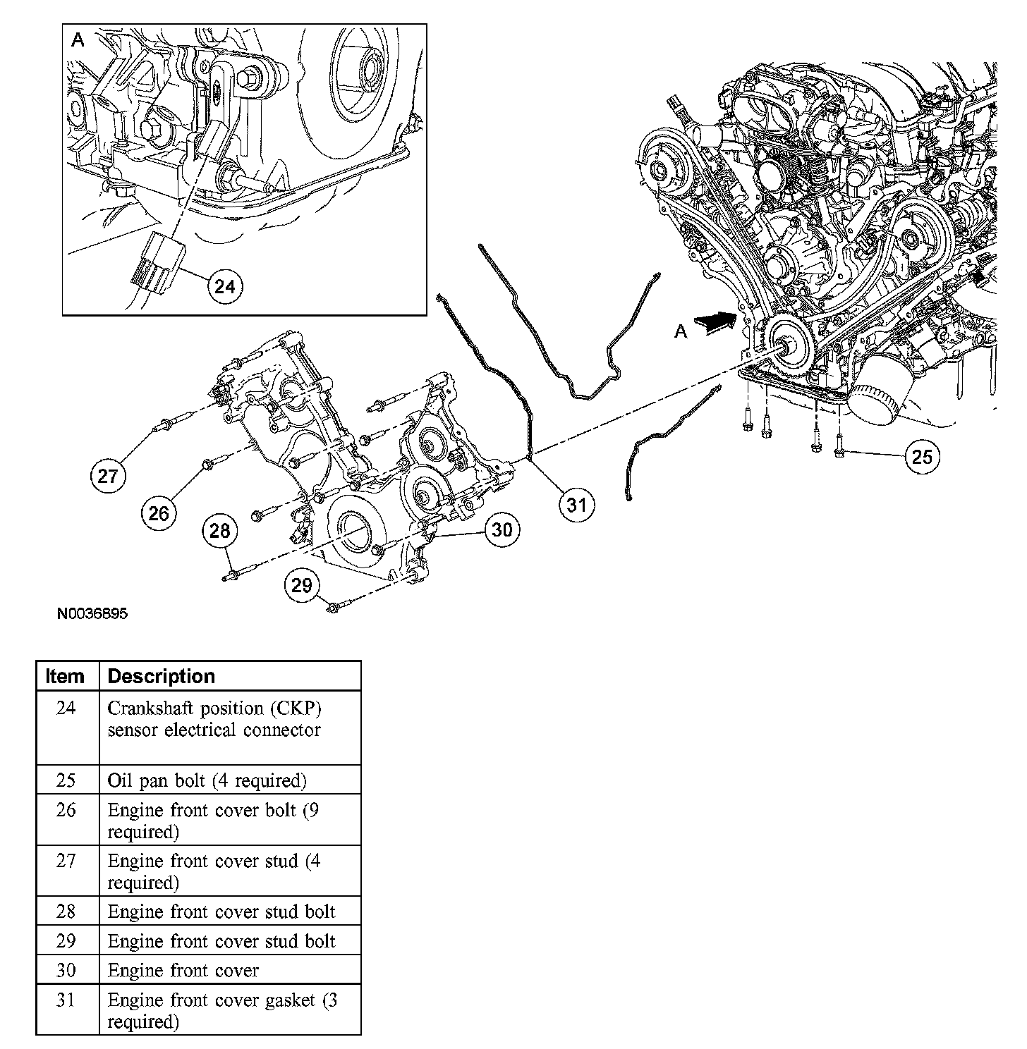 NOTE: If the engine front cover is not secured within 4 minutes, the sealant must be removed and the sealing area cleaned. To clean the sealing area, use silicone gasket remover and metal surface prep. Follow the directions on the packaging. Failure to follow this procedure can cause future oil leakage.