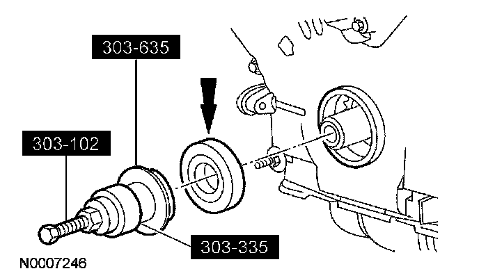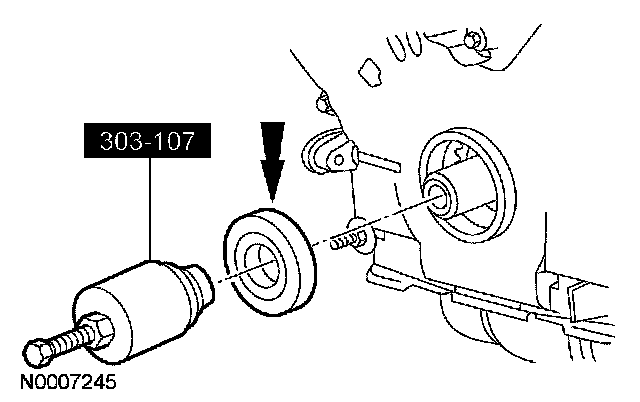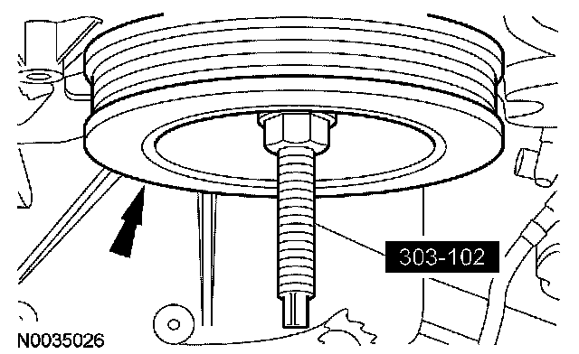 4. Remove the RH side idler pulley. For additional information, refer to Drive Belts, Mounts, Brackets and Accessories.