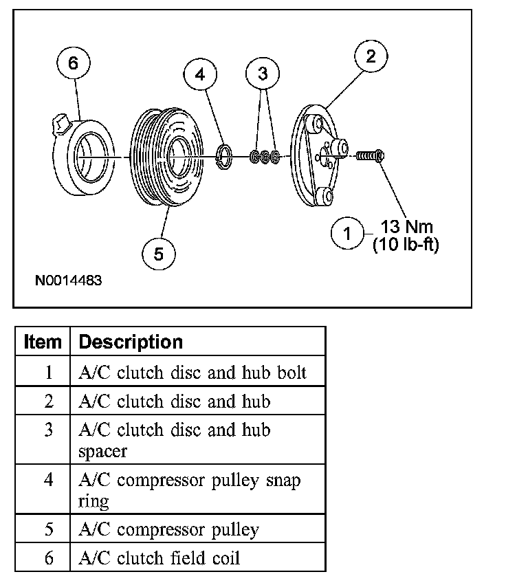 - Inspect for excessive wear, including grooving in the A/C clutch disc and hub or A/C compressor pulley that is more than fingernail depth.