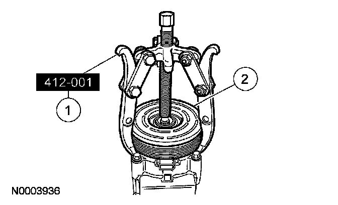 2. CAUTION: Do not use air tools. Damage to the A/C clutch field coil or A/C compressor may result.