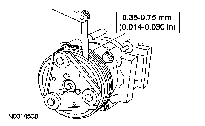7. Measure and adjust the clutch air gap by adding or removing A/C clutch disc and hub spacers.
