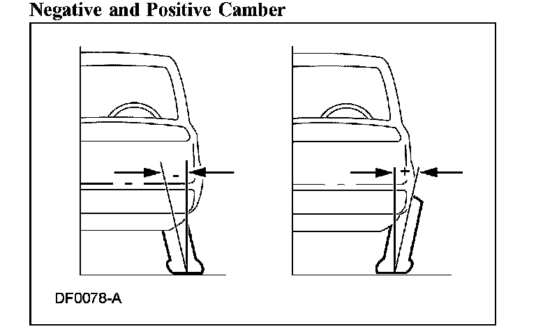Wheel Alignment AnglesCamber and toe are adjustable on the front suspension systems. Front camber is adjusted through the use of a service repair kit (2B236). Caster is preset at the factory and should only be adjusted, through the use of a service repair kit (2B236), after all other possible sources have been inspected and corrected as necessary. Front toe is adjusted by the use of the front wheel spindle tie rod.
