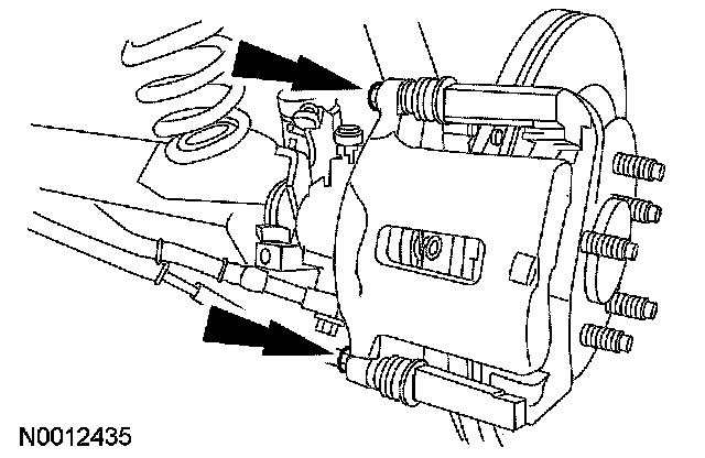 2. Remove the 2 brake caliper bolts and position the brake caliper aside.