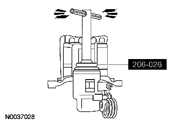 9. Using the special tool, fully retract the brake caliper piston and tighten the bleeder screw.