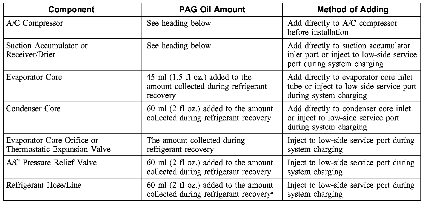 Refrigerant Oil Adding for New Suction Accumulator or Receiver/Drier Installation