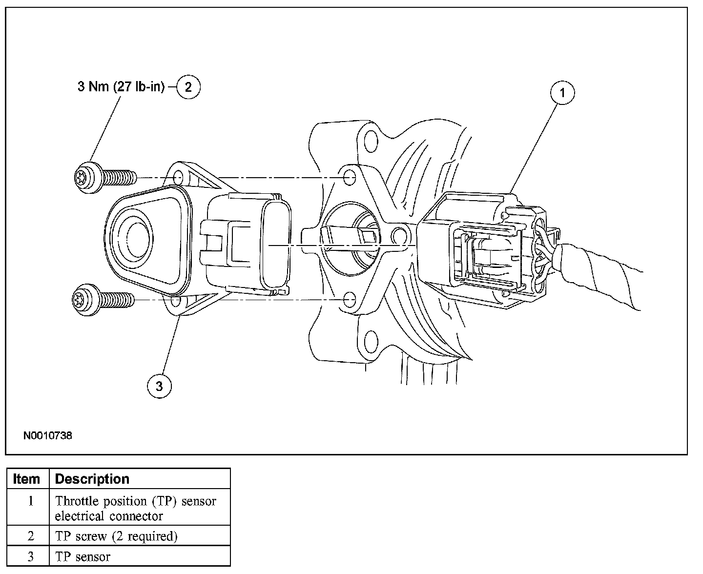 NOTE: When installing the new TP sensor, make sure that the radial locator tab on the TP sensor is aligned with the radial locator hole on the throttle body.
