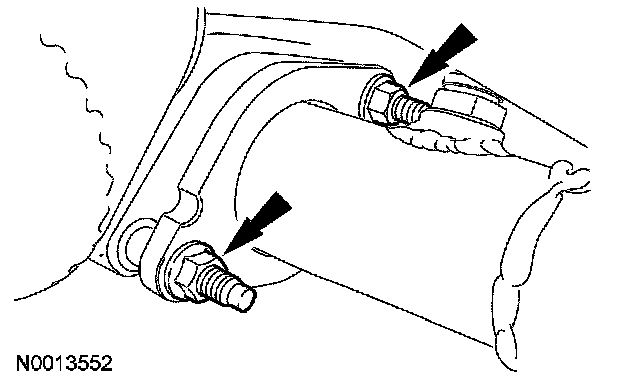 - Starting with the upper nut, alternately tighten, in 10 Nm (89 inch lbs.) increments, the LH catalytic converter-to-exhaust manifold nuts to specification.
