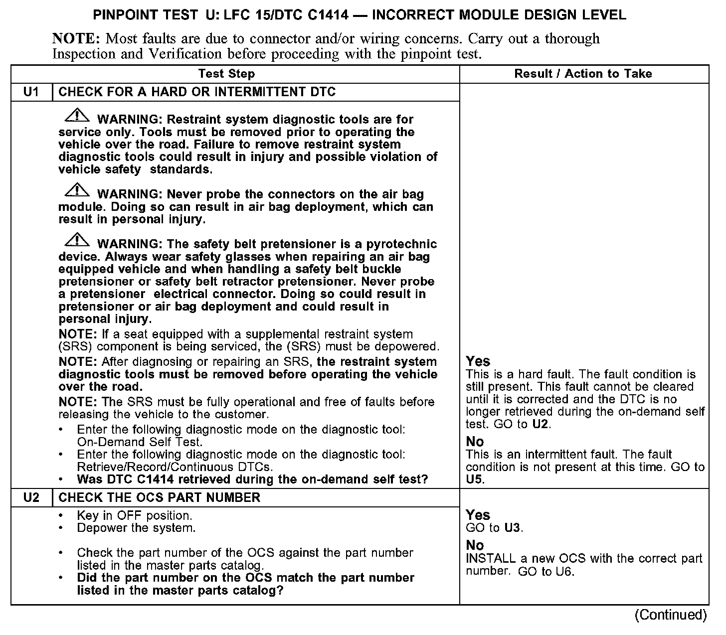 PINPOINT TEST U: LFC 15/DTC C1414 - INCORRECT MODULE DESIGN LEVELU1-U2: