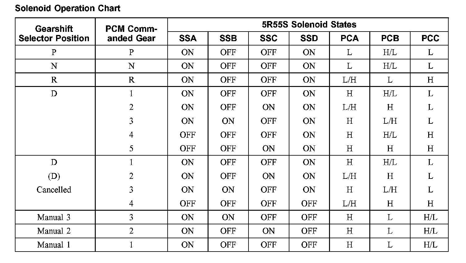 Solenoid Operation Chart