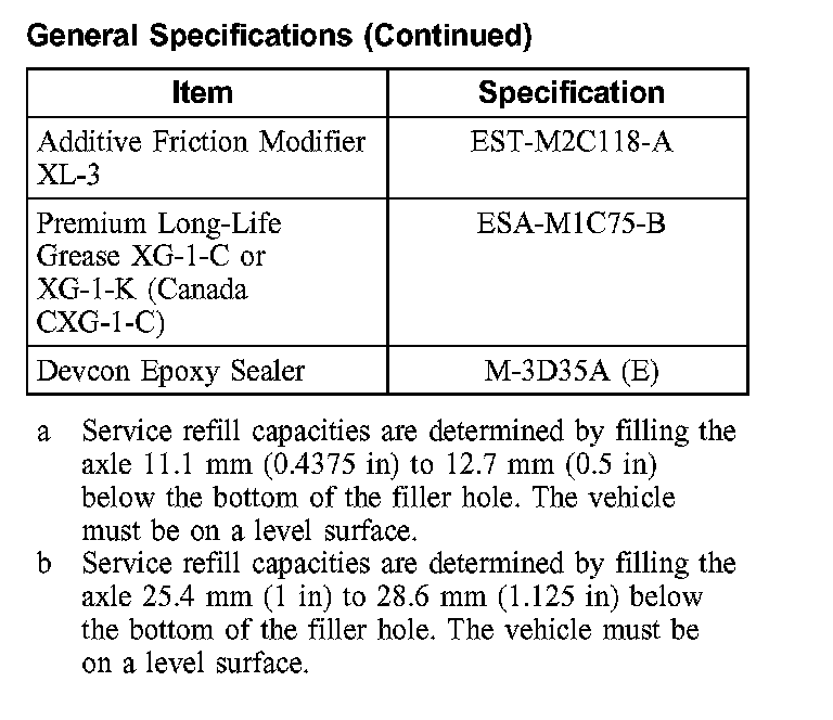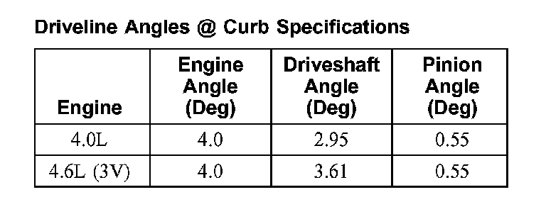 Driveline Angles @ Curb Specifications: