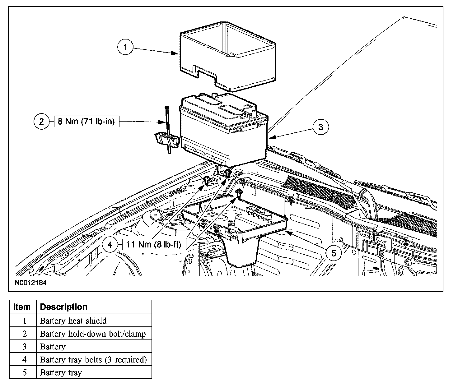 Remove the 3 bolts and the battery tray.
