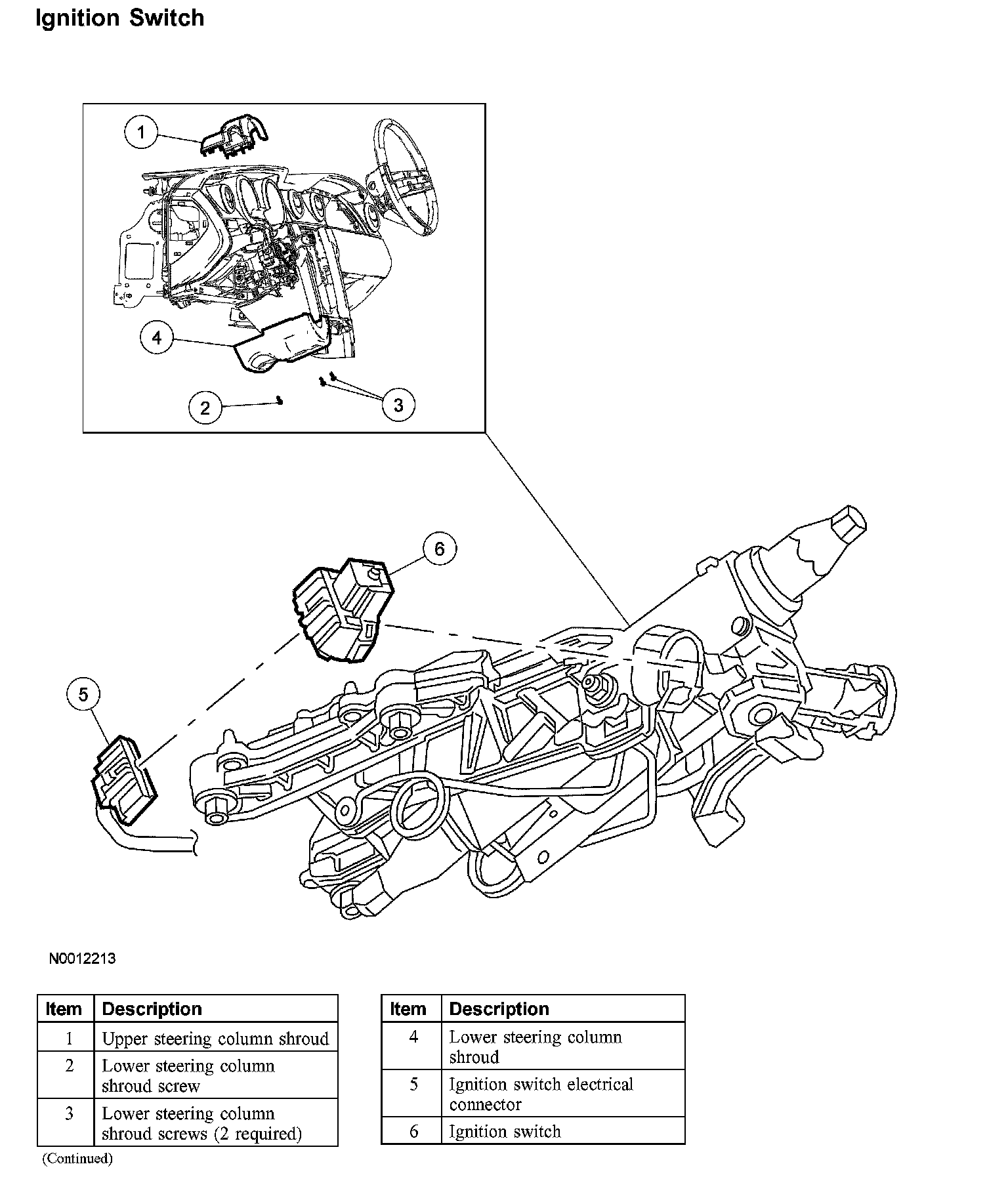 CAUTION: Do not remove the ignition lock cylinder and the ignition switch at the same time or damage to the column can result.