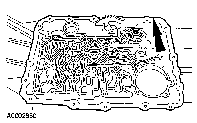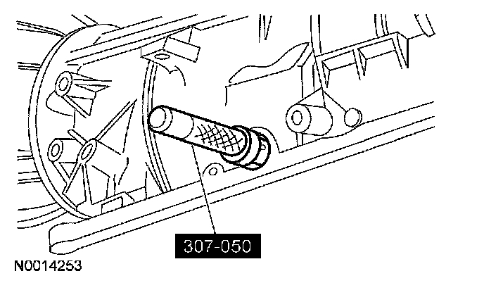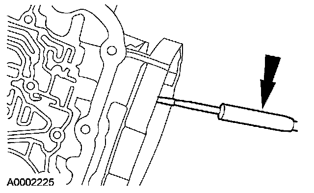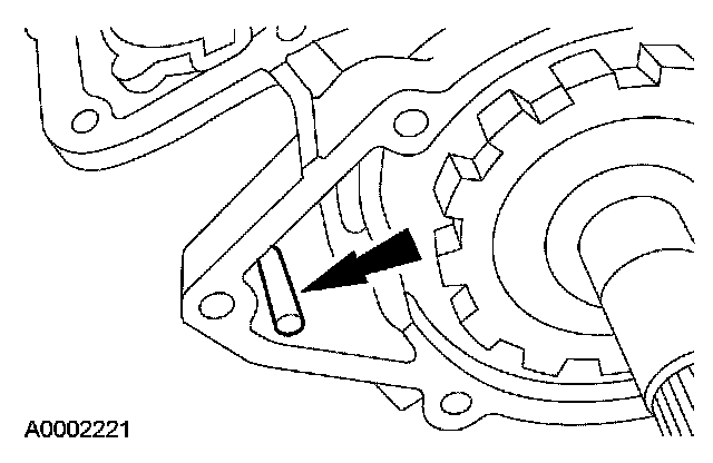 12. CAUTION: Use care not to damage the fluid pan rail surface when installing the retaining pin.