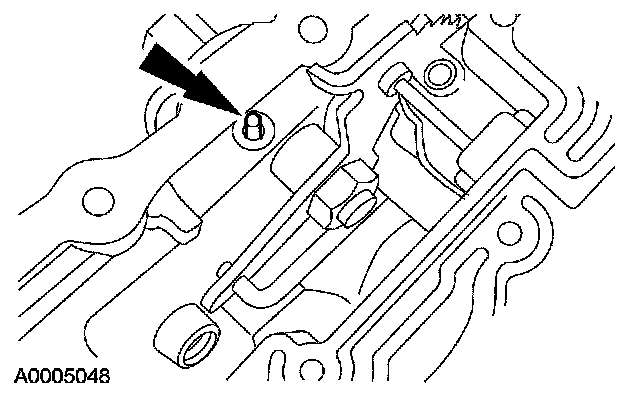 ^ Tap the manual control lever shaft spring pin into the transmission case.