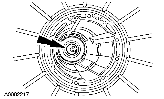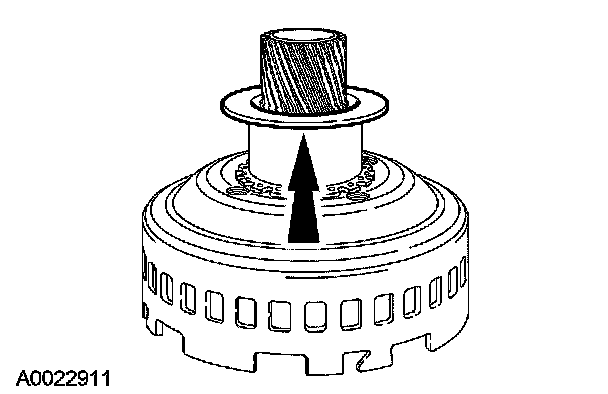 27. CAUTION: The low/reverse brake drum must be pulled forward to install the low/reverse planet retaining ring.