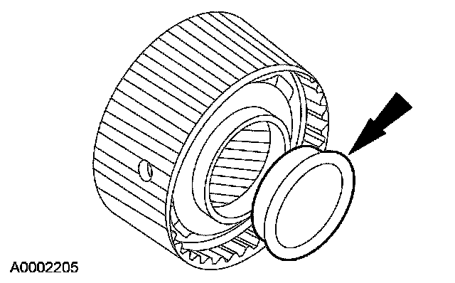 33. Install the No. 6B forward clutch thrust washer onto the forward ring gear hub.