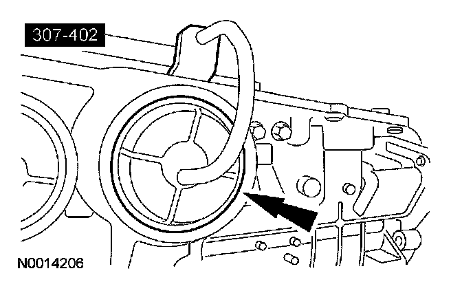 1 Install the special tool and the bolts using the 2 pump screw locations at approximately 6 and 12 o'clock positions