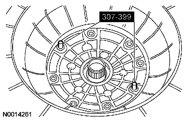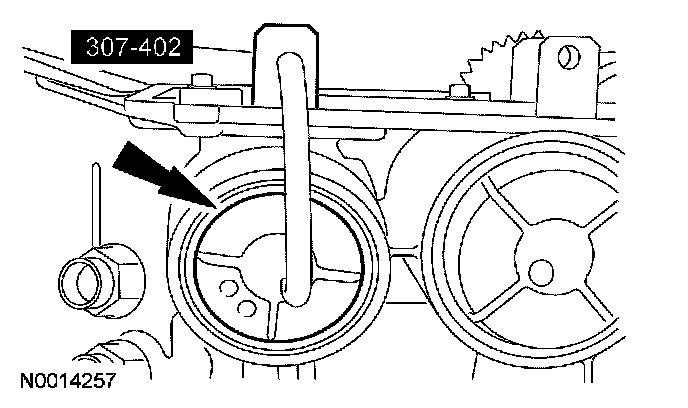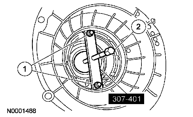 1 Install the special tool and the bolts using the 2 pump screw locations at approximately 6 and 12 o'clock positions.