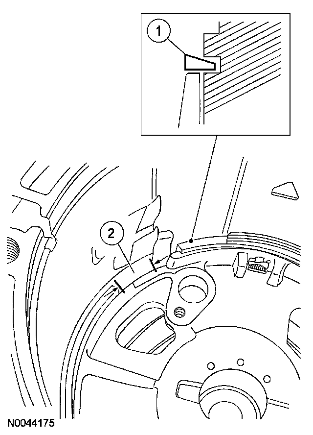 Measure the distance from the top of the gauge bar to the drum bearing surface through the hole in the disc and record as dimension B. Repeat the measurement 180 degrees on the opposite side of the special tool and record as dimension C.