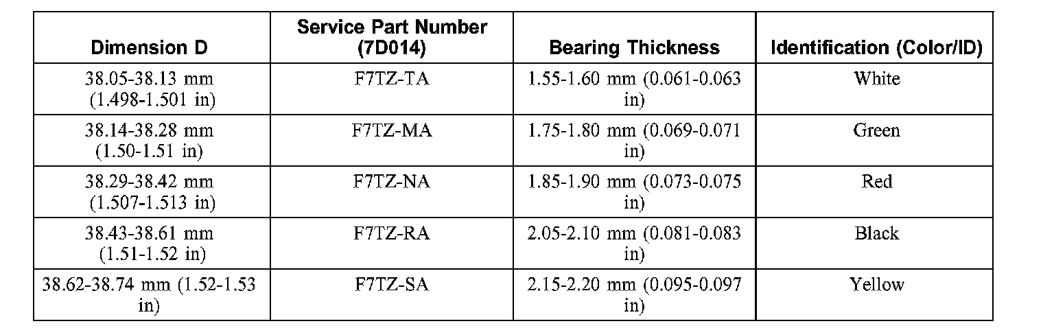 74. Select the No. 1 thrust bearing from the following chart using dimension D.