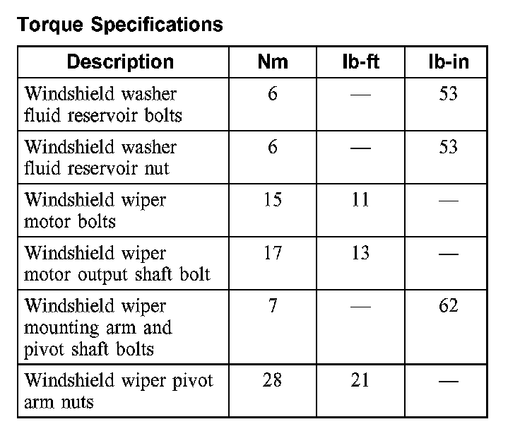 Torque Specifications