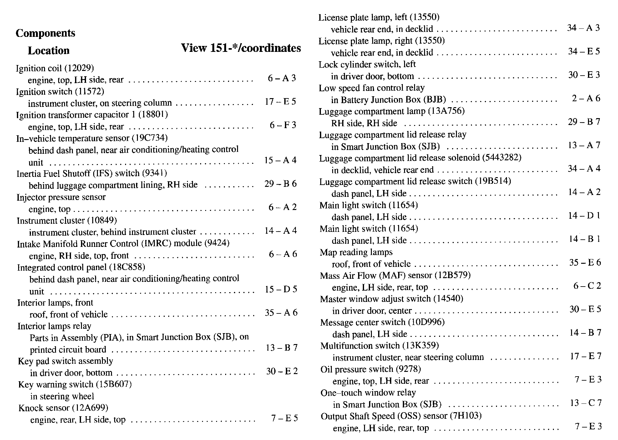 If a link on the Component Location Index to a View is not provided, that means that the Component and/or View in question does NOT apply to the vehicle model selected.