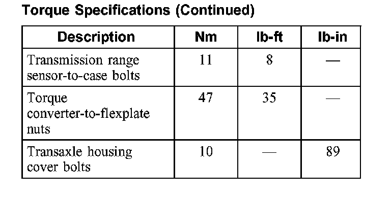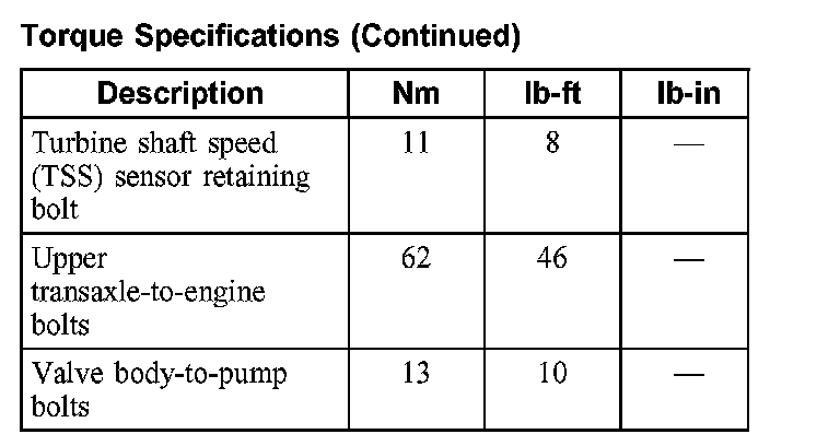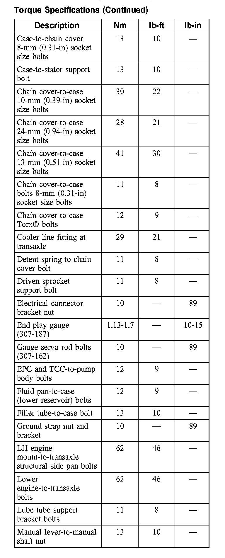 Torque Specifications: