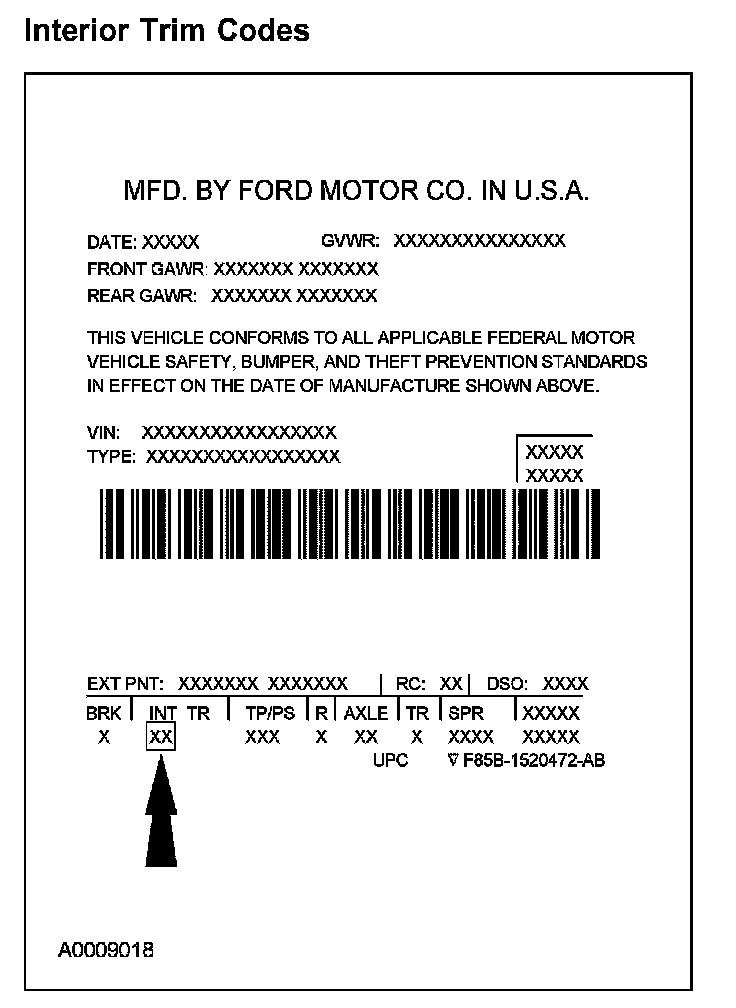 Interior trim codes are listed as a 2-part code. The first character listed indicates the seat and fabric style. The second character listed indicates the interior trim color.