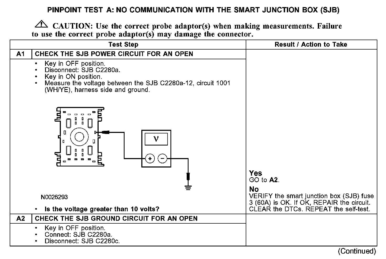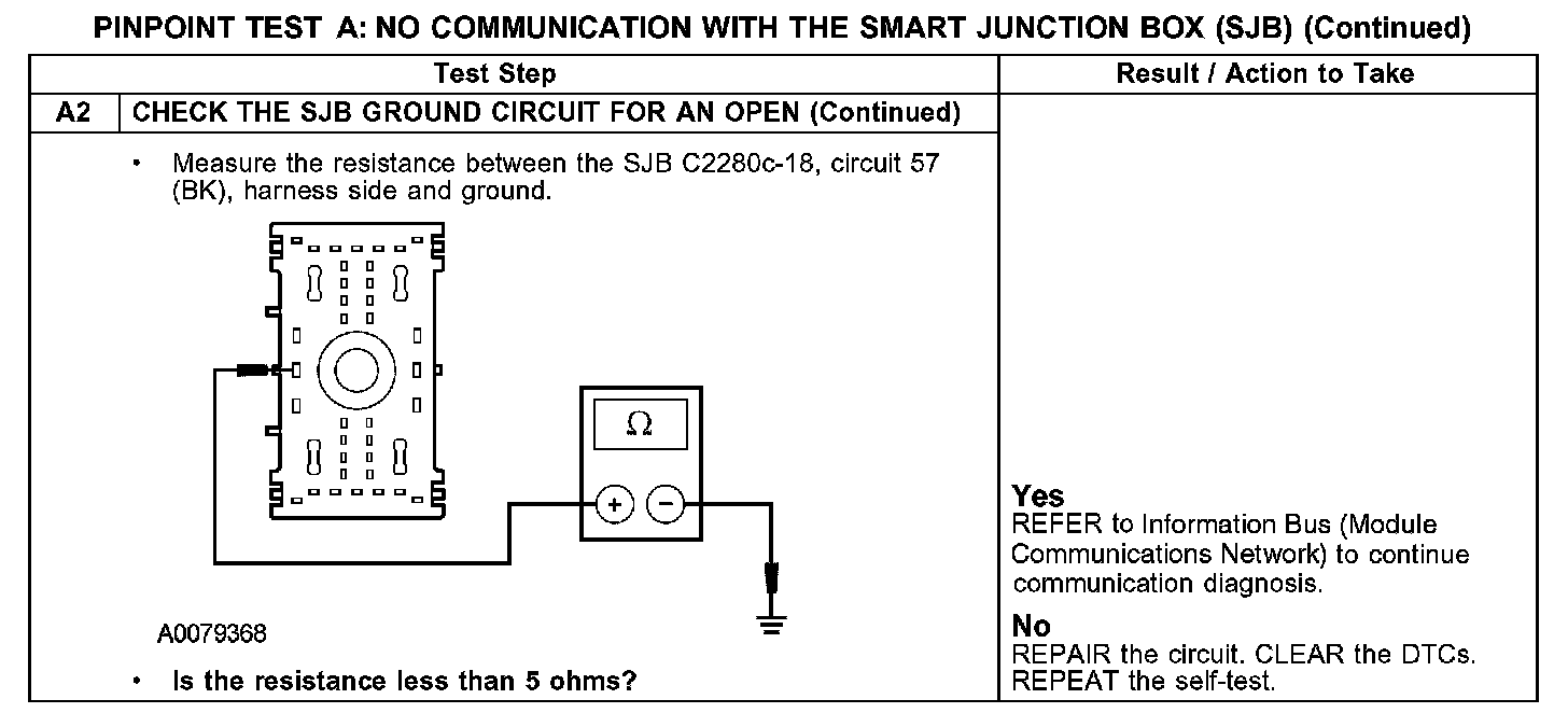 PINPOINT TEST A: NO COMMUNICATION WITH THE SMART JUNCTION BOX (SJB)A1-A2: