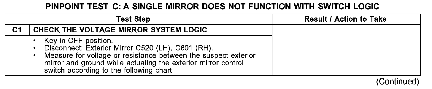 PINPOINT TEST C: A SINGLE MIRROR DOES NOT FUNCTION WITH SWITCH LOGICC1: