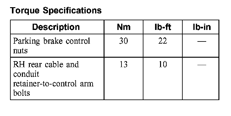 Parking Brake System: Specifications