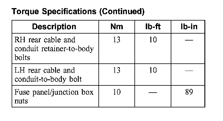 Torque Specifications: