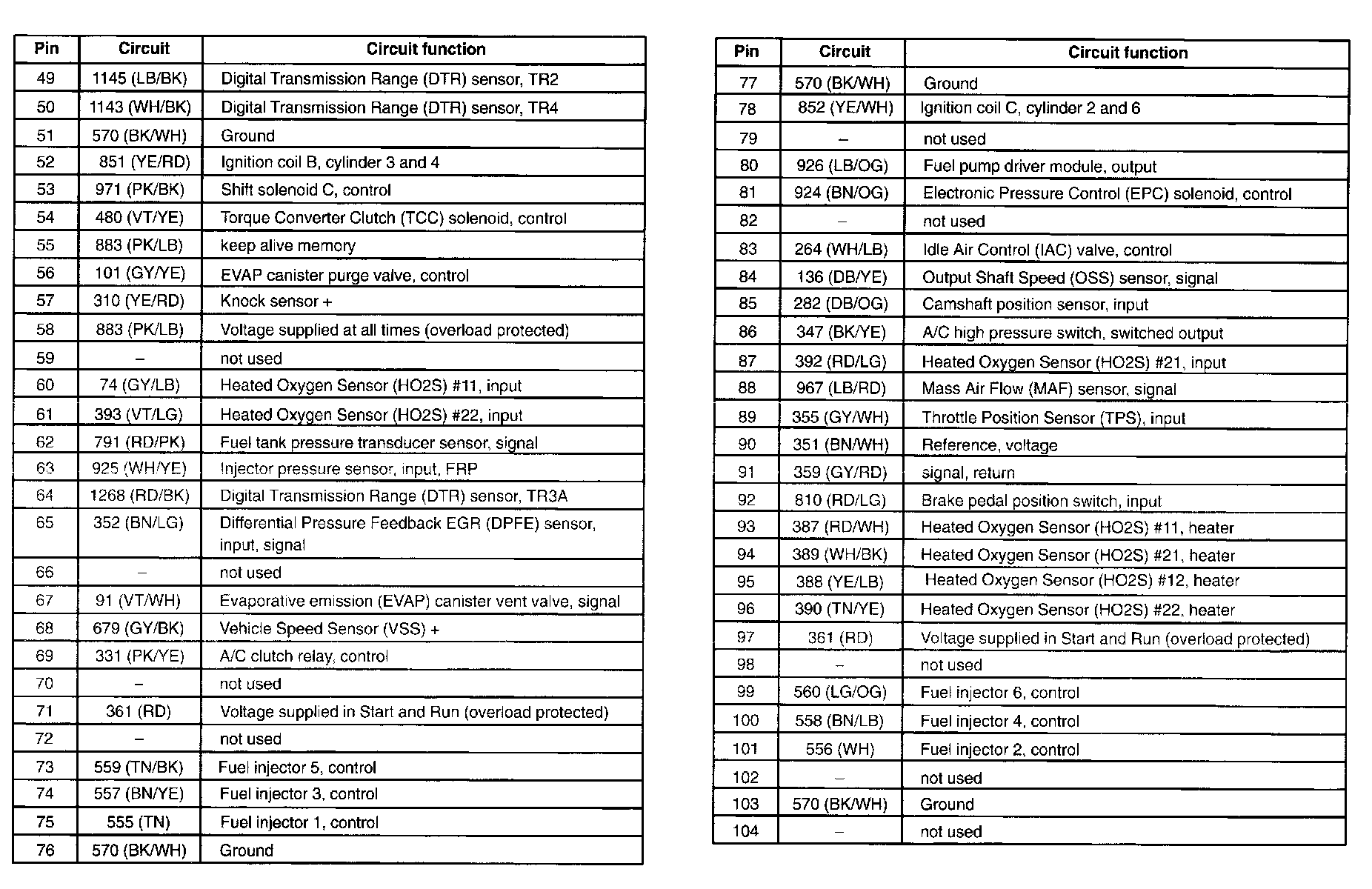 Taurus V6-3.0L VIN U