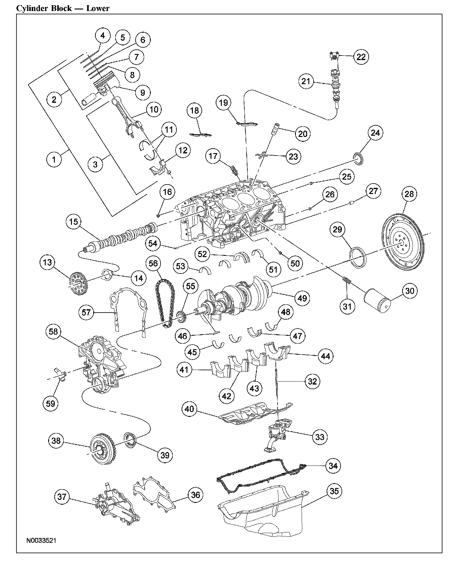CAUTION: During engine repair procedures, cleanliness is extremely important. Any foreign material, including any material created while cleaning gasket surfaces that enters the oil passages, coolant passages or the oil pan, can cause engine failure.