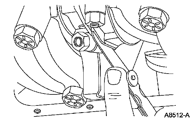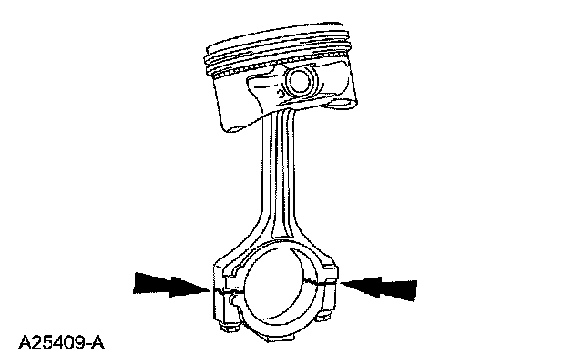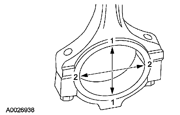 1. Tighten the bolts to specification, then measure the bore in 2 directions. The difference is the connecting rod bore out-of-round. Verify the out-of-round is within specification.