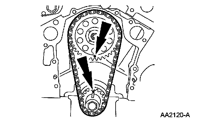 2. Install the timing chain, the camshaft sprocket and the crankshaft sprocket as an assembly.