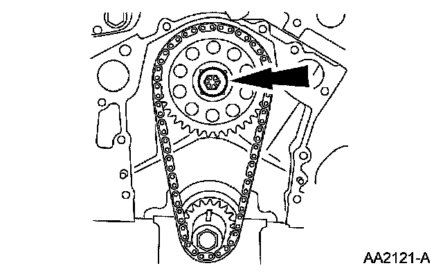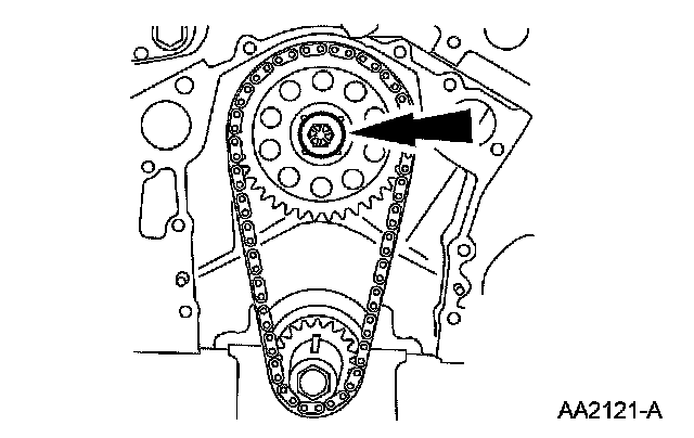 4. Remove the timing chain, the camshaft sprocket and the crankshaft sprocket as an assembly.