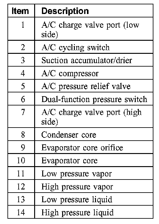 During stabilized conditions (air conditioning system shutdown), the refrigerant is in a vaporized state and pressures are equal throughout the system. When the A/C compressor is in operation it increases pressure on the refrigerant vapor raising its temperature. The high-pressure and high-temperature vapor is then released into the top of the condenser core.