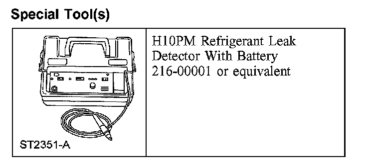 Leak test the refrigerant system using the Refrigerant Leak Detector. Follow the instructions included with the leak detector for handling and operation techniques.
